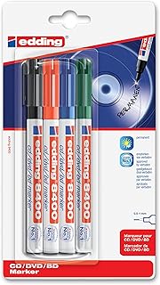 Edding 4-8400-4-1999 Marqueur permanent pour CD/DVD/Blu-ray Pointe 0,5/1 mm Lot de 4