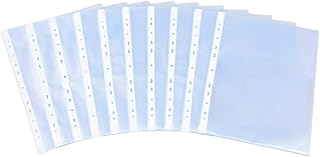 100 pièces Pochettes A4 Transparentes Perforées,Pochettes Transparentes Perforées, en PVC pour à 11 anneaux,Ouverture par le Haut,transparentes, épaisseur 0,07 mm