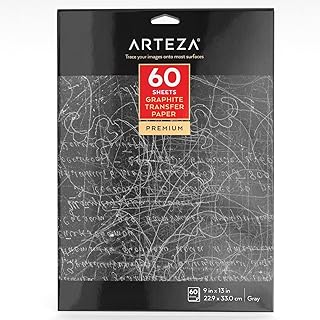Arteza Papier Carbone Pour Transfert, Qualité Artiste, Papier Graphité de Transfert Par Traçage sur le Bois, Tissu, Papier, Céramique Taille 22.8 x 33 cm, 60 Feuilles en Gris