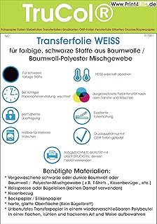 T-Shirt Textile Feuille de Transfert POUR TISSUS FONCÉS Textiles A4 Blanc à repasser et auto-dessin (20 feuilles) - pour imprimantes laser et copieurs