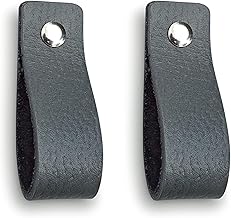 Brute Strength - Poignées en cuir - Gris foncé - 2 pièces - 16,5 x 2,5 cm - comprend 3 couleurs de vis par poignée en cuir pour les armoires de cuisine - salle de bain – armoires