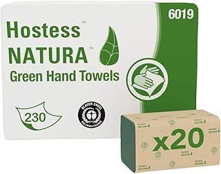 Hostess Natura, 6019, Essuie-mains Pliés, 1 Épaisseur, Verts, 20 Paquets de 230 Feuilles