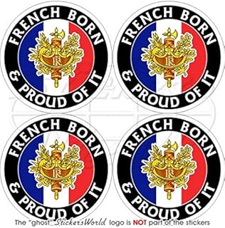 France Français Born & Proud, Française 50 mm (5,1 cm) bumper-helmet en vinyle autocollants, Stickers x4