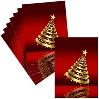 Carte Noël - Joyeux Noel — 8 Cartes Non Pliées ➽ 3 Formats Dispos — Carte Sapin Dore Fond Rouge