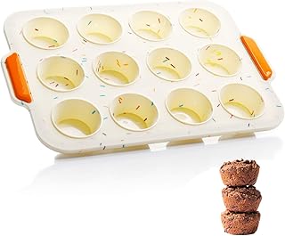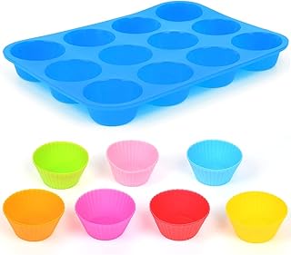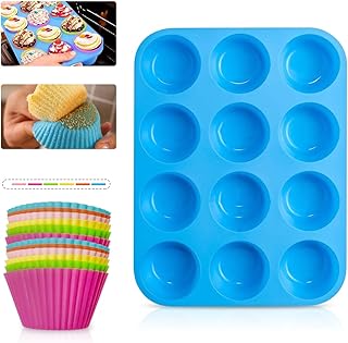 Vockvic Moules à Muffins Réutilisables, 12 Pièces Moules de Cuisson en Silicone Qualité Alimentaire, Moulle à Cupcakes Mini Anti-adhésif, pour Brownies Glaces Puddings