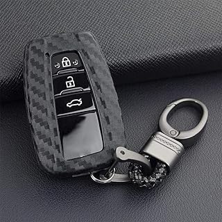 Happyit Clé de Voiture Cas Couverture en Fibre de Carbone Motif Silicone Souple pour Toyota CHR C-HR Camry Prius Prado 2 Boutons Télécommande sans Clé