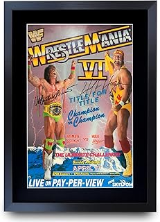 HWC Trading A3 FR Wrestlemania 6 Affiches Programme Hulk Hogan Ultimate Warrior Cadeau Signé Cadres A3 Imprimé Autographe WWF WWE Wrestling Cadeaux Imprimer L'Affichage d'image Photo