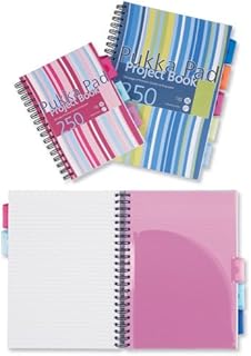 Pukka Pads PROBA5 Lot de 3 cahiers de projet à spirale avec couverture plastique Format A5 3 intercalaires 250 pages lignées 80 g/m² Couleurs assorties