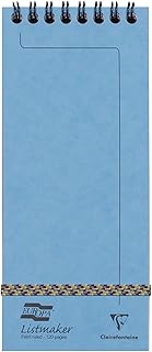 Clairefontaine 482/1115Z - Un bloc à spirale Listmaker Europa 120 pages 7,6x18cm 90g lignées, couverture carte lustrée, Turquoise