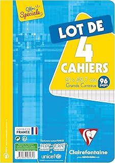Clairefontaine 643161C - Un lot de 4 cahiers piqués 96 pages 21x29,7 cm 90 grands carreaux, Couverture carte couleurs assorties
