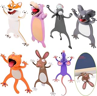 7 Pcs Marque-Page 3D Animal Farfelu Signets d'Animaux de Dessin Animé en PVC Marques de Livre Mignon Animaux Écrasés Papeterie de Beaux Animaux pour Lecture Fête Souvenirs Étudiant Enfant